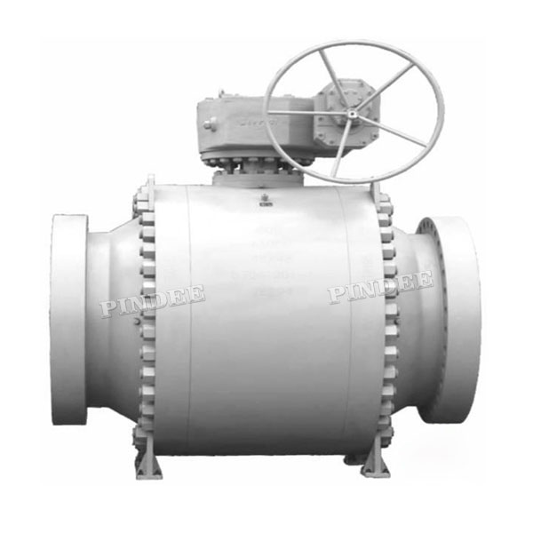 API6D Full Bore Trunnion Mounted Ball Valve, 48Inch, 600LB, WCB, F316+PEEK, Gear Box